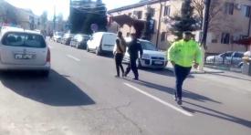 Din vehicul au coborât mai multe persoane, una dintre acestea fiind imobilizată de polițiști.