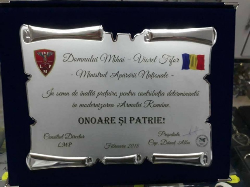 Liga Militarilor Profesioniști a acordat o plachetă ministrului Apărării. Ce mențiune specială este trecută pentru Mihai Fifor