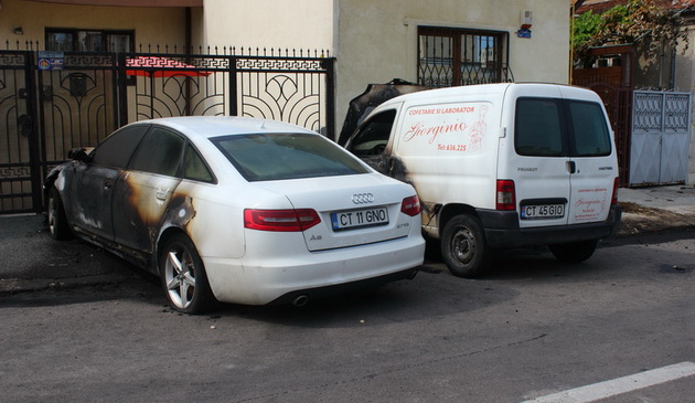 Aceasta pentru că focarul incendiului a fost localizat la roata din dreapta-faţă a unei limuzine marca Mercedes ML. Adică un loc unde nu se pune problema unui eventual scurt-circuit electric, cel mai întâlnit motiv al izbucnirii incendiilor la maşini parcate. Din cauză că rezervorul a explodat după izbucnirea focului, motorina s-a scurs în jur, a luat foc şi a aprins, la rândul său, alte trei autoturisme aflate în imediata apropiere: un Audi, o Skoda şi un Peugeot. Proprietarul maşinii de la care a pornit focul le-a declarat oamenilor legii că nu are duşmani şi nici nu a fost implicat în vreun conflict, astfel că nu înţelege cine şi de ce i-ar fi dat foc maşinii. Cazul a fost preluat de poliţişti, care au deschis o anchetă şi încearcă să dea de urma presupusului incendiator.