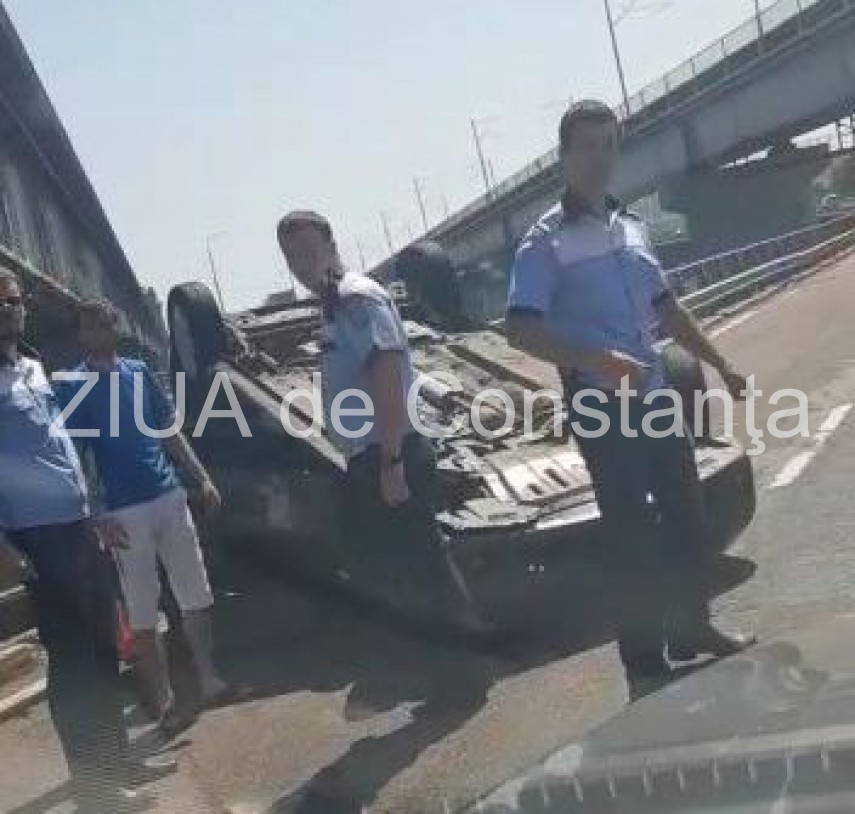 O maşină s-a răsturnat pe A2, pe pod, între Fetești şi Cernavodă. La faţa locului se află un echipaj de poliţie.