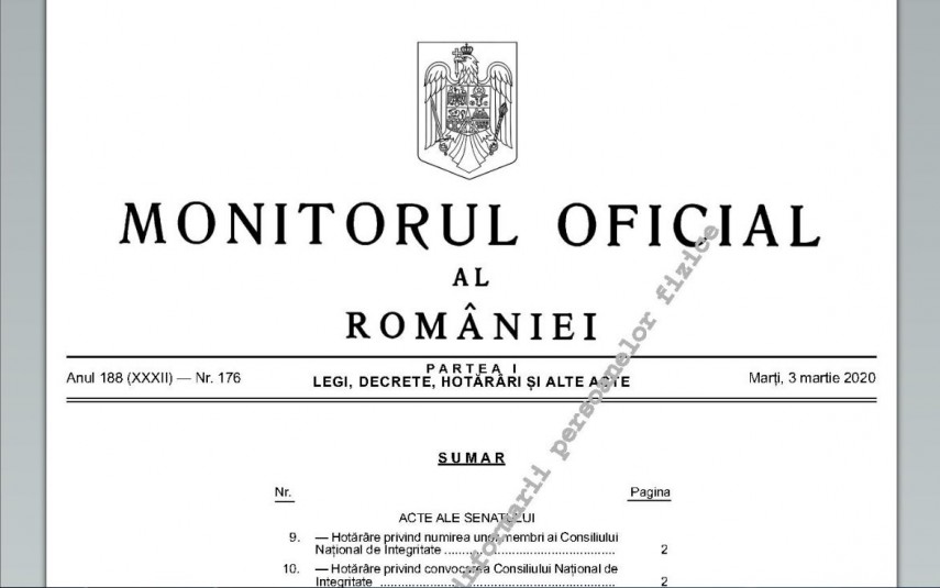 Actul normativ, cu numărul 9, din 2 martie, este semnat, pentru preşedintele Senatului, de Robert-Marius Cazanciuc.