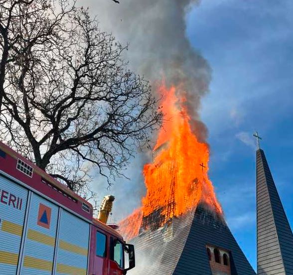 O biserică din România, cuprinsă de flăcări! Pompierii intervin de urgență