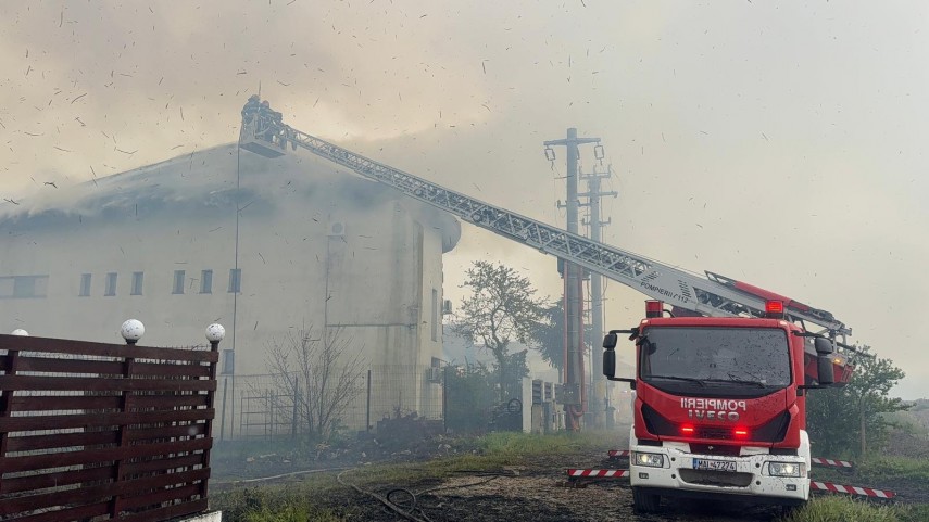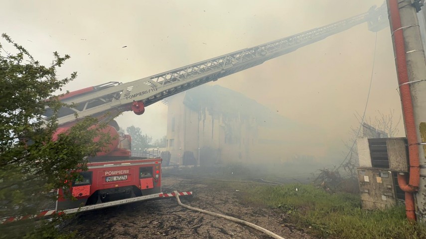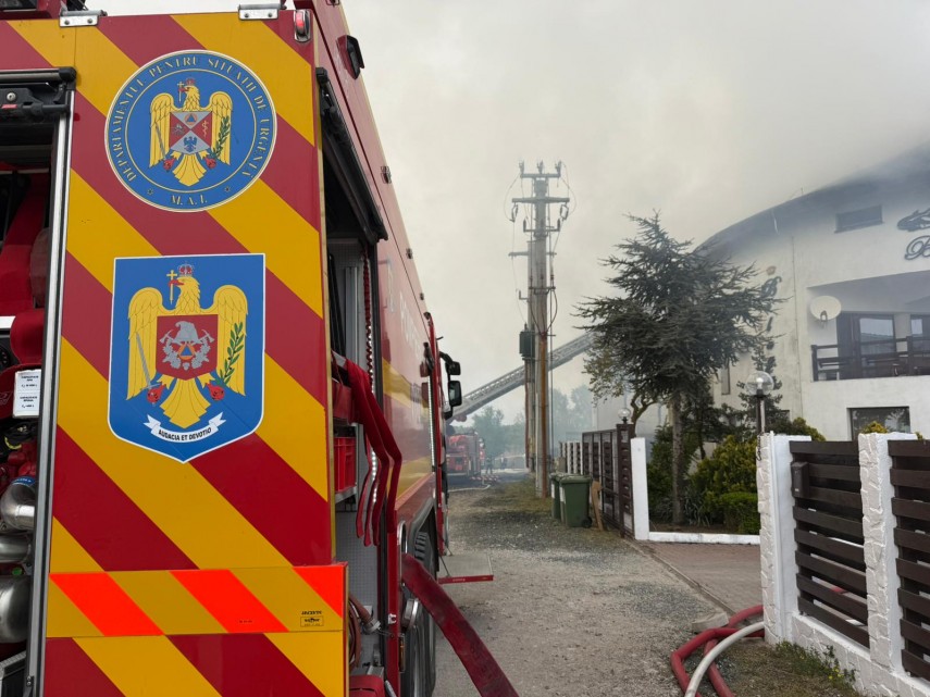 FOTO UPDATE. O pensiune din Murighiol, județul Tulcea a luat foc. Incendiul s-a extins și la o a doua pensiune din apropiere