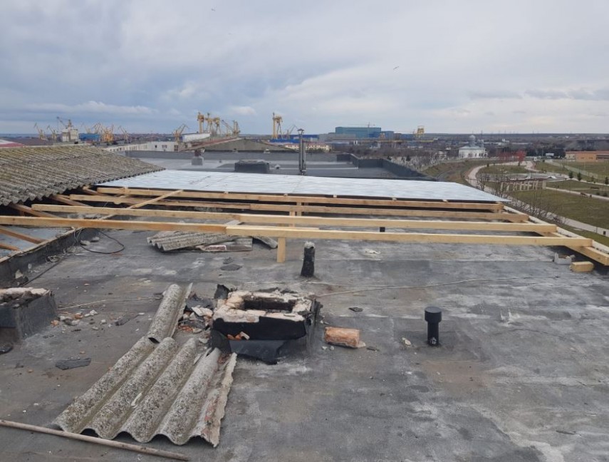 O porțiune din acoperișul unui bloc, spulberată de vânt în Mangalia (galerie foto)