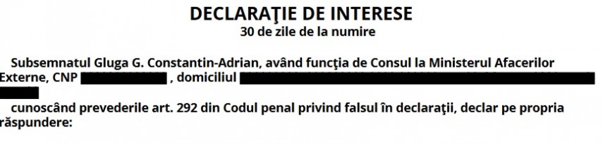 - La data de 26 mai 2024, Adrian Constantin Glugă a completat declarația de interese, potrivit prevederilor legislative în vigoare, în termen de 30 de zile de la numirea în funcția publică.