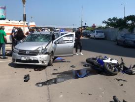 La data de 3 mai a.c., în jurul orei 23.40, polițiști din cadrul Serviciului de Siguranță Rutieră au fost sesizați cu privire la faptul că în Portul Tomis din municipiul Constanța s-a produs un accident rutier.Potrivit IPJ Constanța, polițiștii deplasați la fața locului au constatat că impactul s-a produs între un autoturism, condus de un bărbat de 19 ani, și o motocicletă condusă de un minor de 17 ani.