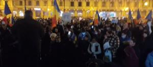 Pe plasmele mari amplasate în Piaţă este scris "Jos statul de drept!", "Macovei o să ţi-o iei!", "Stop proceselor staliniste!", "Run Codruţa, run!", "Iohhanel. România lucrăturii bine făcute", "Abuzurile voastre au îngrădit libertatea noastră".