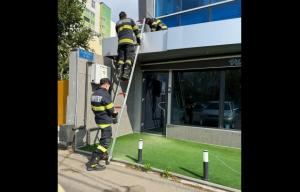Din primele informații, este vorba despre salvarea unei pisici care a rămas blocată pe un acoperiș.