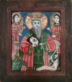 Dovadă a cinstei de care se bucura acest sfânt în satul tradițional sunt icoanele pictate pe sticlă, în secolul al XIX-lea, în cunoscute centre de iconari. Astfel de icoane, pictate la Șcheii Brașovului, Țara Oltului și Făgăraș, se regăsesc și în expoziția permanentă a Muzeului de Artă Populară Populară.