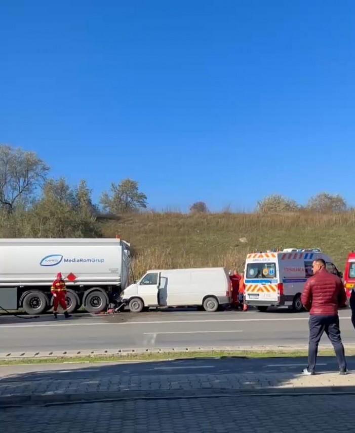Bărbatul, aflat la volanul unei dube, a intrat în coliziune cu o autocisternă.