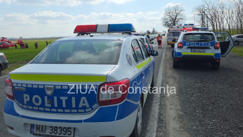 FOTO+VIDEO O persoană a murit în urma unui accident rutier între Cobadin și Ciocârlia, județul Constanța! Intervine elicopterul SMURD