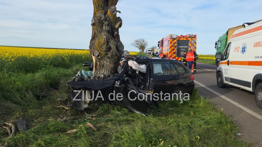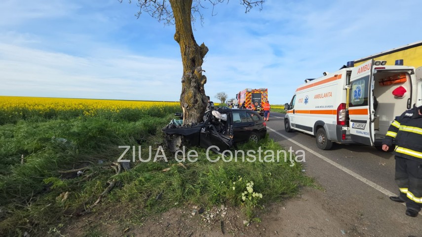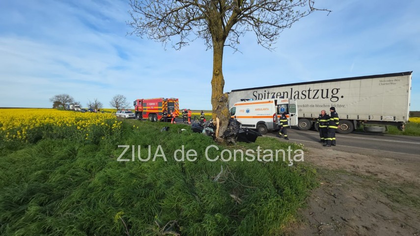 FOTO. Știri Constanța azi: Accident grav la Amzacea! O persoană încarcerată și inconștientă, pompierii