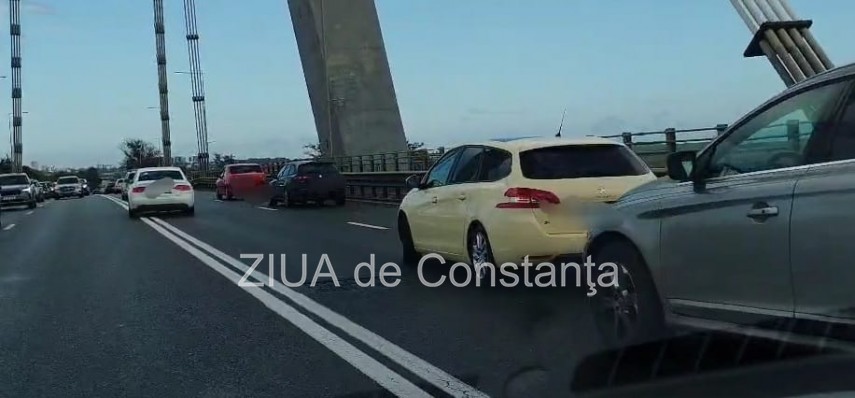 Trei autoturisme au fost implicate într-un accident rutier pe Podul Agigea, azi, 11 octombrie, pe direcția spre Constanța.