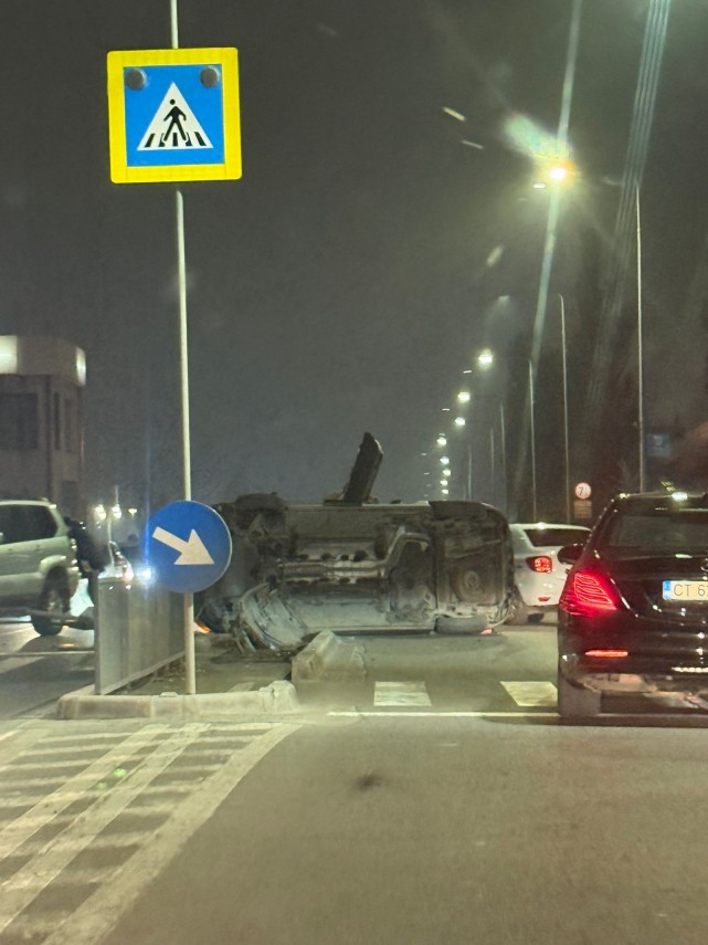 Știri Constanța FOTO. UPDATE. Accident pe Bulevardul Aurel Vlaicu. O mașină s-a răsturnat