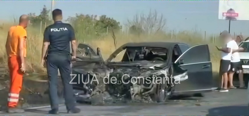 Știri Constanța: Incendiu la un autovehicul între Ovidiu și Constanța. Iată cum arată mașina marca Mercedes