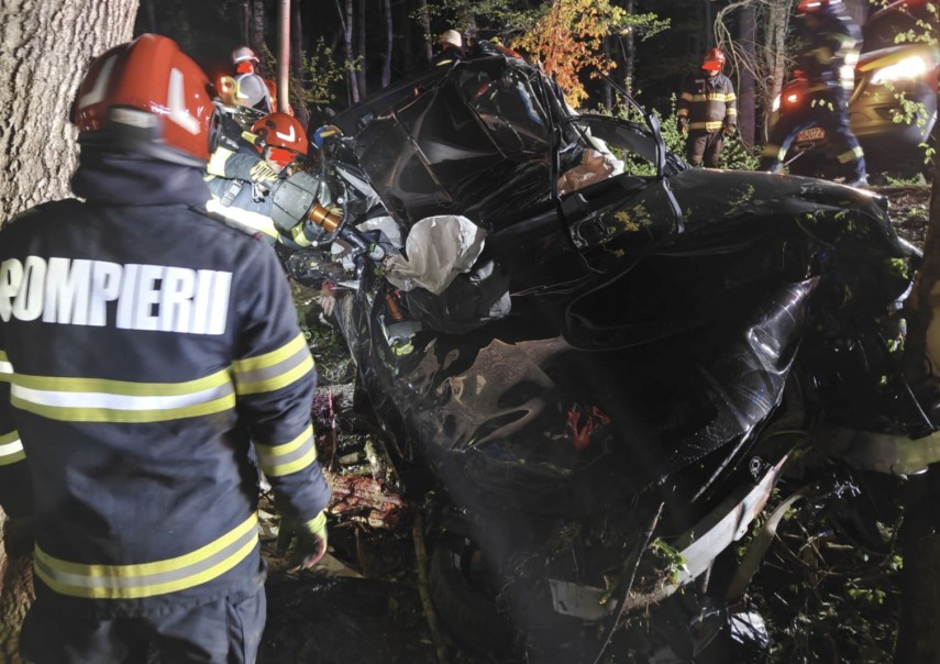 Știri România: FOTO. Doi tineri de 20 de ani și-au pierdut viața după un impact violent cu un arbore