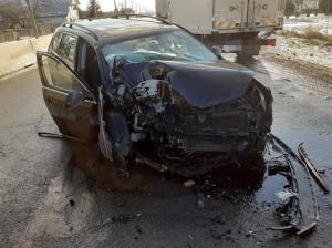 Trafic blocat pe DN 15, după coliziunea dintre un autoturism şi un autotren. O victimă, în stare gravă