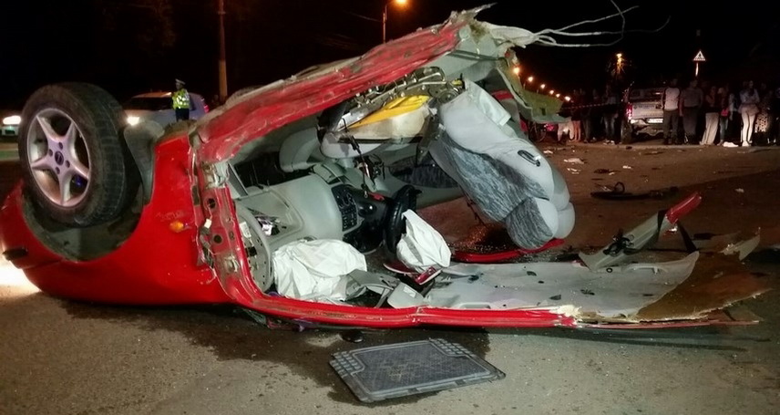 În urma accidentului, a rezultat avarierea autoturismului Mazda, care s-a rupt în două, iar jumătatea din spate a acestuia a fost proiectată pe trotuar, unde a lovit doi pietoni.
