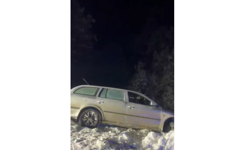 Noaptea trecută, un autoturism a derapat pe drumul forestier dintre Comandău și Gura Teghii, județul Buzău, într-o zonă montană izolată, cu drum acoperit de zăpadă și temperaturi extrem de scăzute.
