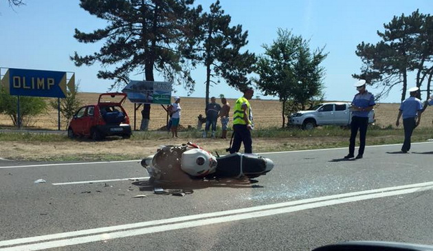 Un nou accident rutier a avut loc ieri, pe DN 39, în apropiere de Olimp, nu departe de locul tragediei în care duminică și-au pierdut viața cinci oameni. Un motociclist a fost spulberat de un autoturism Matiz. Conform Poliției Rutiere, șoferul autoturismului a virat stânga, peste linia dublă continuă, pentru a intra pe DN 39B, drumul de acces către Olimp, moment în care a fost izbit, din spate, de motociclistul care circula regulamentar, în aceeași direcție de deplasare, către Mangalia.Bărbatul aflat la volanul Matizului s-a ales cu dosar penal pentru vătămare corporală din culpă. Motociclistul, un tânăr de 26 de ani, din București a suferit răni superficiale. Conform agenților de la Rutieră, niciunul nu consumase alcool înainte de a porni la drum.