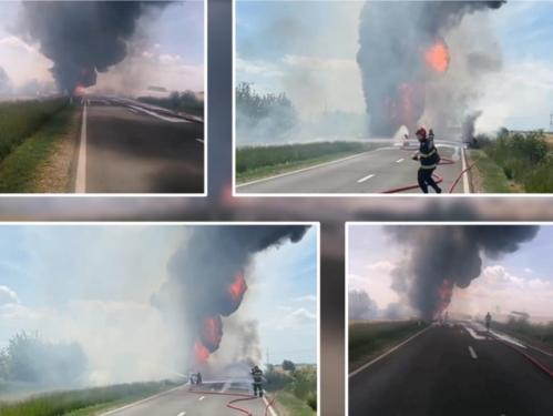 Un autoturism s-a răsturnat pe DN 2B Brăila – Buzău, Traficul, blocat în zonă