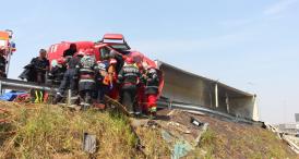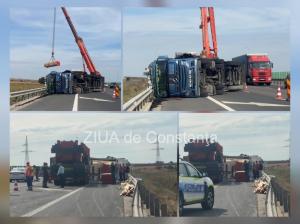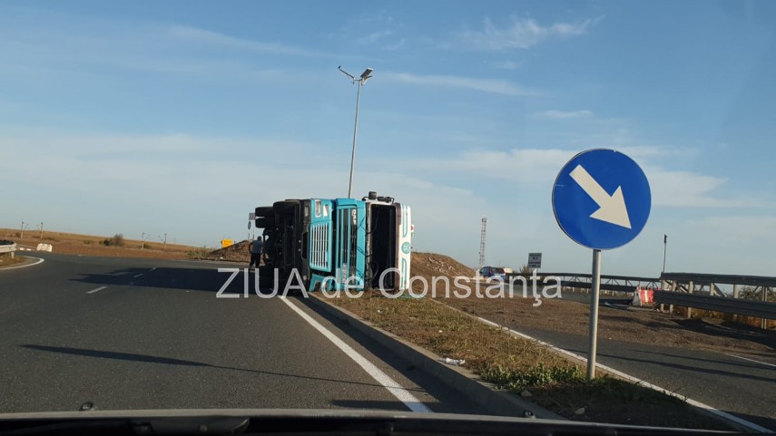 Un tir s-a răsturnat pe Autostrada Ovidiu - Agigea. O victimă. Șoferul, sub influența alcoolului