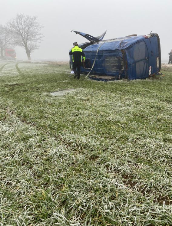 Centrul INFOTRAFIC din Inspectoratul General al Poliţiei Române informează că pe DN38 Constanța – Negru Vodă, la intrarea în localitatea Topraisar dinspre Amzacea, județul Constanța, un microbuz s-a răsturnat – pe fondul neadaptării vitezei la condițiile unui carosabil alunecos – în decor.