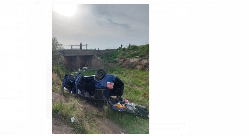 UPDATE Accident rutier la ieșire din Siliștea spre Cernavodă. O mașină s-a răsturnat. Printre victime și copii