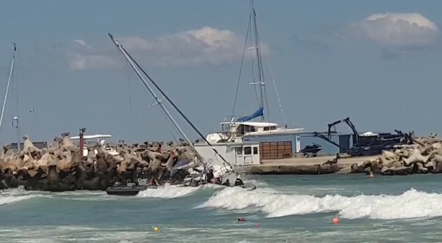 UPDATE - Deznodământul misiunii de salvare Pericol în portul Belona din Eforie Nord. Ambarcațiune eșuată. Șapte persoane se aflau la bord (galerie foto+video)