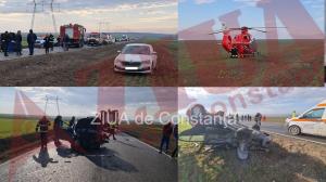 Potrivit SAJ Constanța în urma accidentului a fost rănit un barbat, soferul autotrenului, în vârstă de 50 ani.
