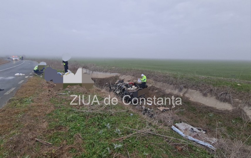 UPDATE Trei persoane decedate într-un accident rutier la ieşire din localitatea Cuza Vodă. Un autoturism, răsturnat în şanţ (GALERIE FOTO+VIDEO)
