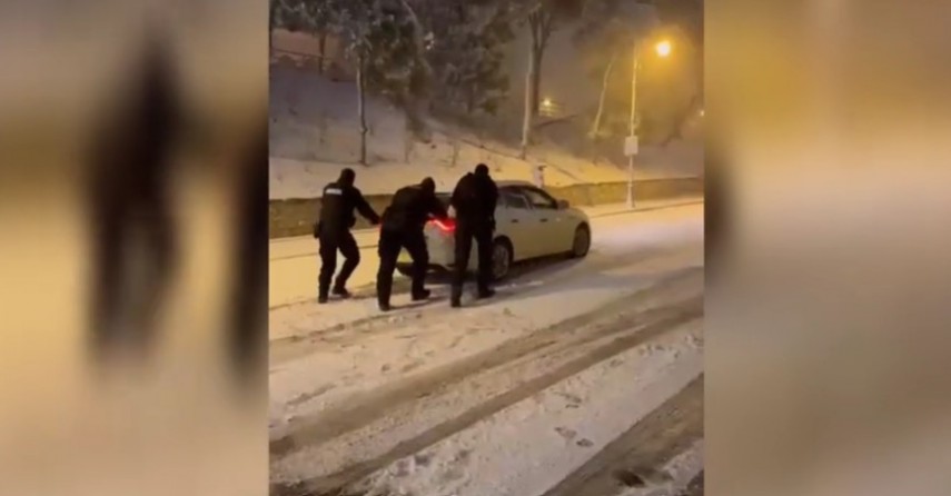 VIDEO Șofer rămas blocat pe strada Termele Romane din cauza zăpezii. Jandarmii constănțeni l-au ajutat să își continue deplasarea în siguranță