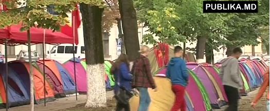 Vineri, susţinătorii PSRM şi ai formaţiunii "Partidul Nostru" au instalat zeci de corturi în faţa legislativului. Potrivit organizatorilor, acest spaţiu a fost numit "Orăşelul Victoriei".