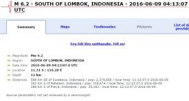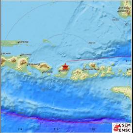 Potrivit Centrului Seismologic Euro-mediteranean cutremurul a fost localizat la coordonatele 8.28 S ; 116.48 E, la 427 km E de Surabaya (pop: 2,375,000) şi 52 km NE de Mataram (pop: 319,000).