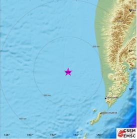 Epicentrul a fost localizat la coordonatele 50.52 N ; 159.94 E, la 1637 km NE de Sapporo-shi, Japonia (pop: 1,884,000), 295 km S de Petropavlovsk-Kamchatskiy (pop: 188,000) şi 264 km SE de Ozernovskiy (pop: 2,700), ambele din Rusia.