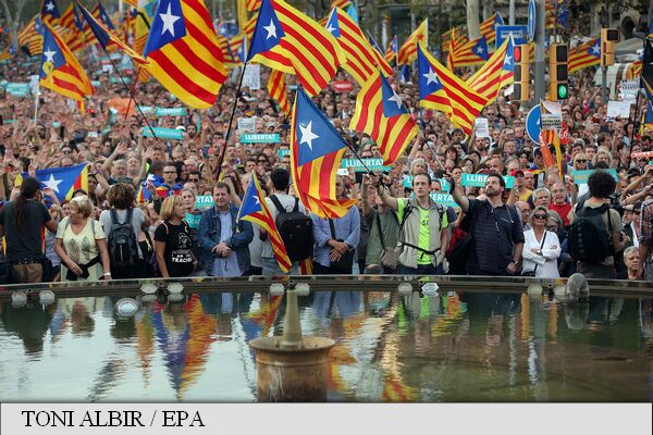 Protest cu sute de mii de persoane la Barcelona. În frunte este liderul catalan Carles Puigdemont