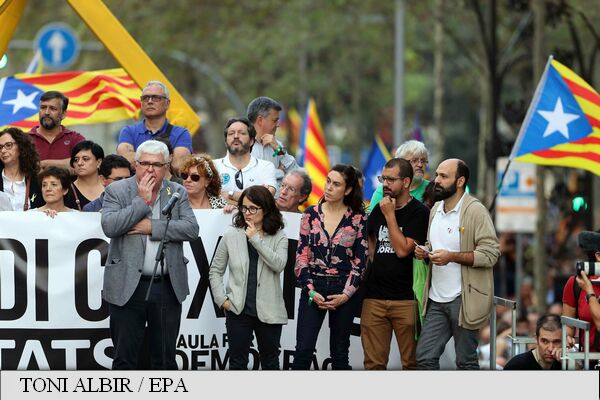 Sute de mii de manifestanți catalani, în frunte cu liderul separatist Carles Puigdemont, au umplut sâmbătă centrul Barcelonei pentru a cere independența după ce guvernul central a solicitat destituirea executivului catalan, relatează AFP, preluat de Agerpres.Manifestația, care a reunit 450.000 de persoane, potrivit poliției locale, era inițial organizată în scopul de a cere eliberarea a doi lideri, Jordi Cuixart și Jordi Sanchez, liderii Omnium Cultural și, respectiv, Adunării Naționale Catalane (ANC), principalele două asociații separatiste, inculpați pentru revoltă împotriva autorităților, dar adunarea a luat o altă turnură după anunțurile de sâmbătă ale Madridului.