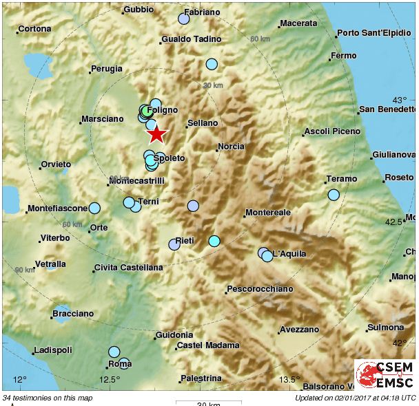 Potrivit Centrului Seismulogic Euro-Mediteranean cutremurul a fost înregistrat, la 05.35-Ora României (local time: 04:36), la zece kilometri adâncime, la coordonatele 42.86 N/12.76 E.