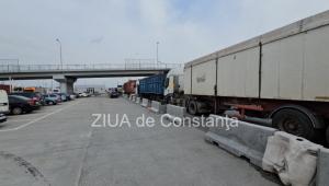 Astăzi, pe Podul Nou, de la intrarea spre Poarta 10 bis, la Agigea, sunt blocate ambele benzi de circulație de TIR-uri. Autoturismele sunt deviate pe contrasens pentru a putea trece pe lângă TIR-uri.