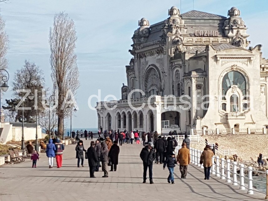 Constanța. Faleza Cazinoului arhiplină. Tradiționala plimbare din prima zi a Anului Nou (fotoreportaj+video)