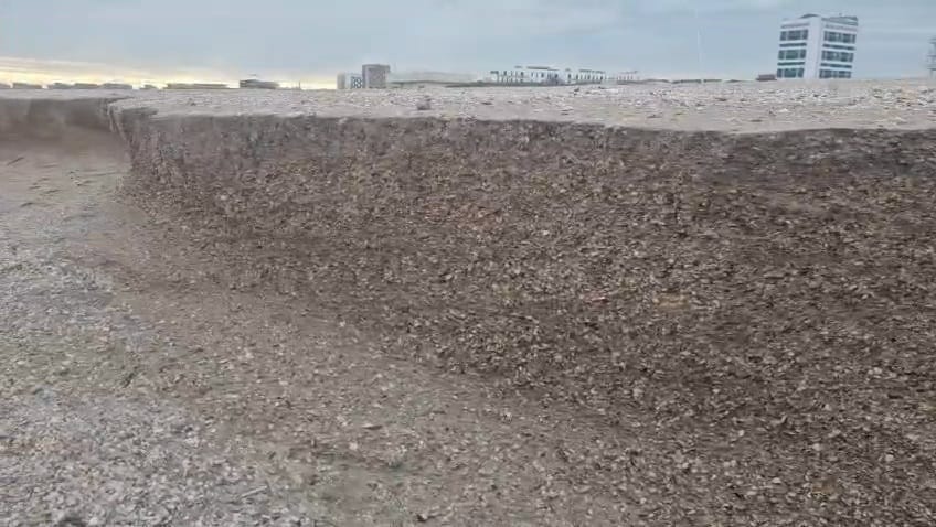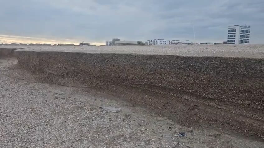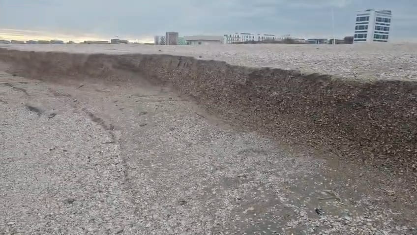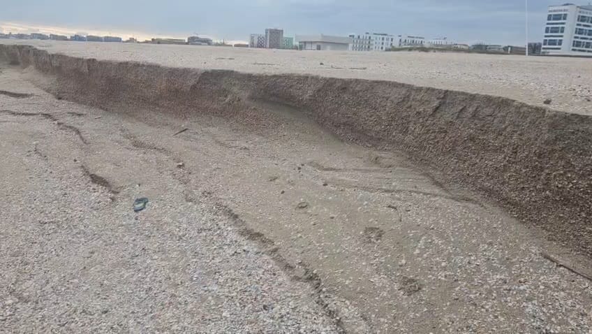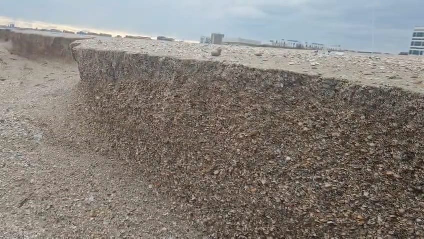 FOTO+VIDEO: Fenomen de „cliffing” pe plaja din zona Hotelului Rex din Constanța, pe fondul vântului și valurilor