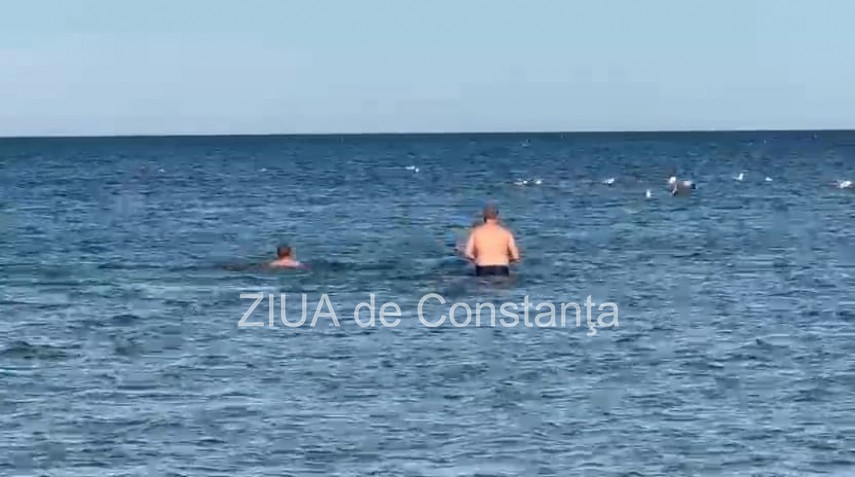 FOTO+VIDEO: Final de octombrie cu baie în mare, la Constanța. Câțiva curajoși s-au aventurat în apa rece