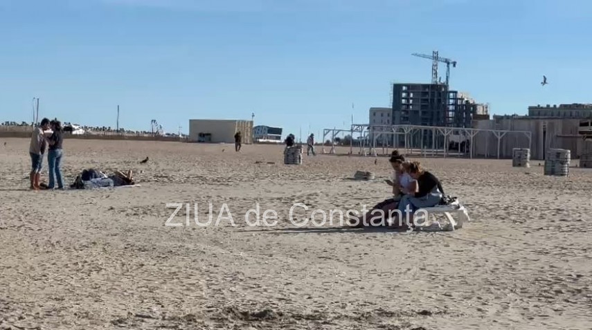 Afară sunt 13 grade Celsius, iar mulți oameni au profitat de ziua plăcută pentru a ieși la plimbare pe plajele din Constanța.