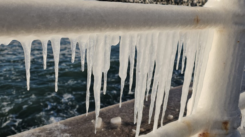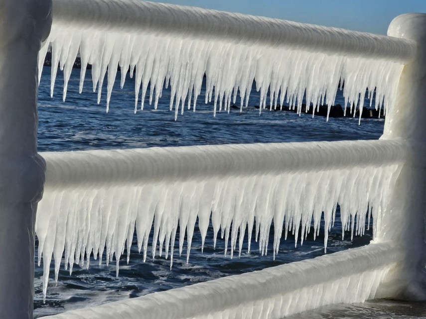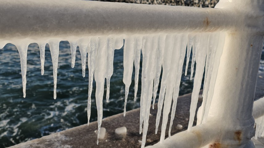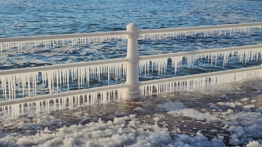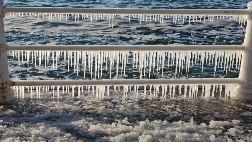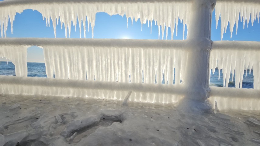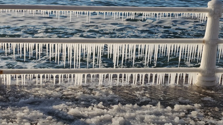 FOTO+VIDEO Imagine spectaculoasă la malul mării! Faleza Cazinoului, acoperită de gheață și țurțuri