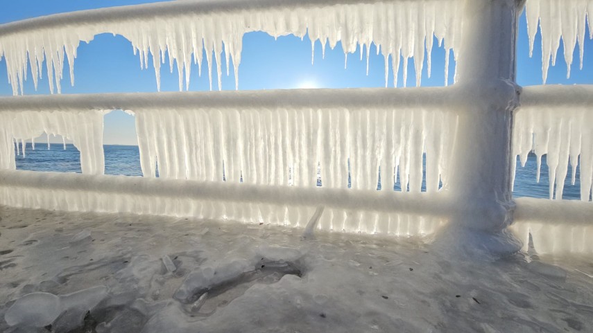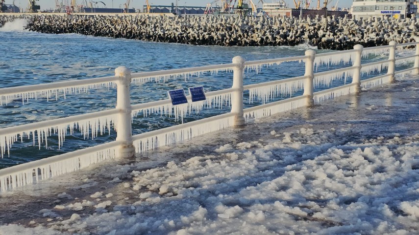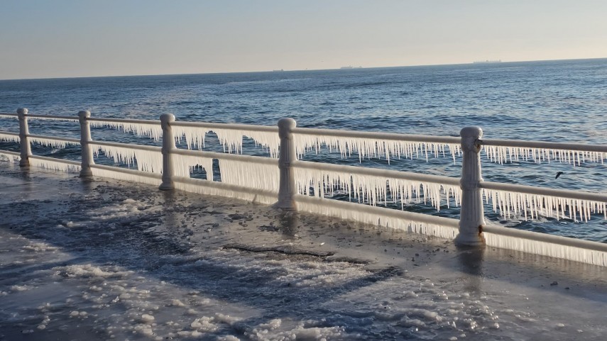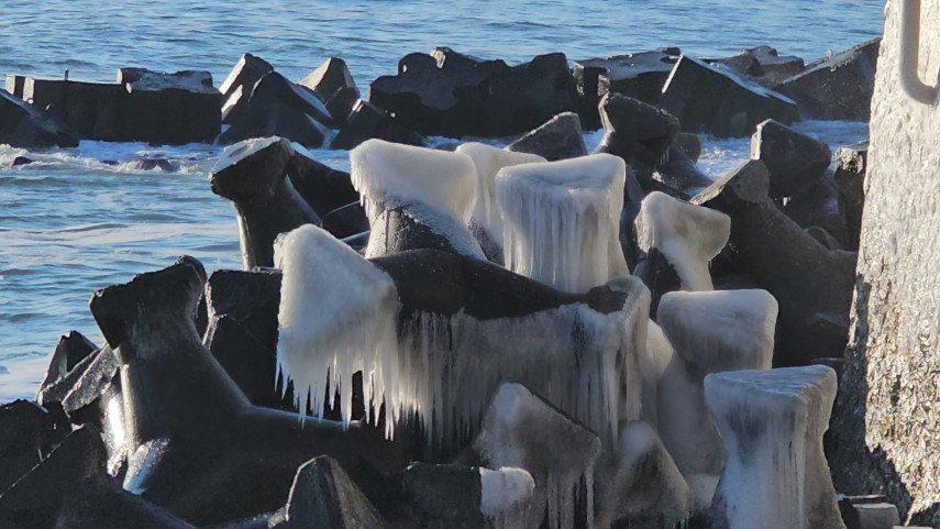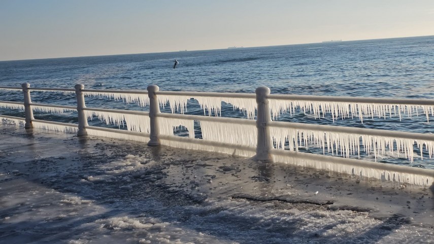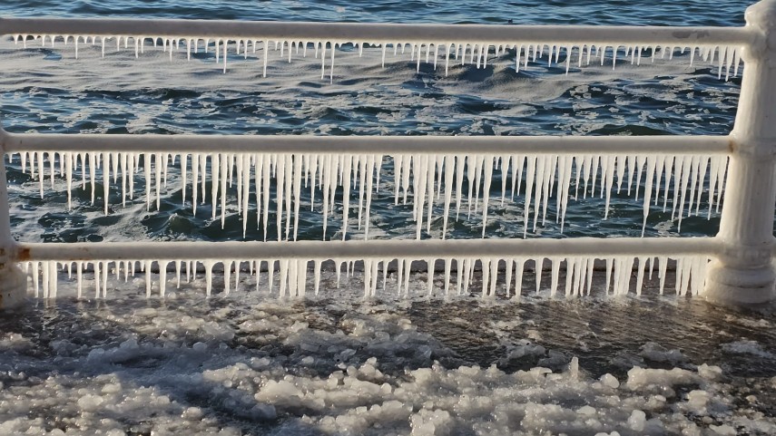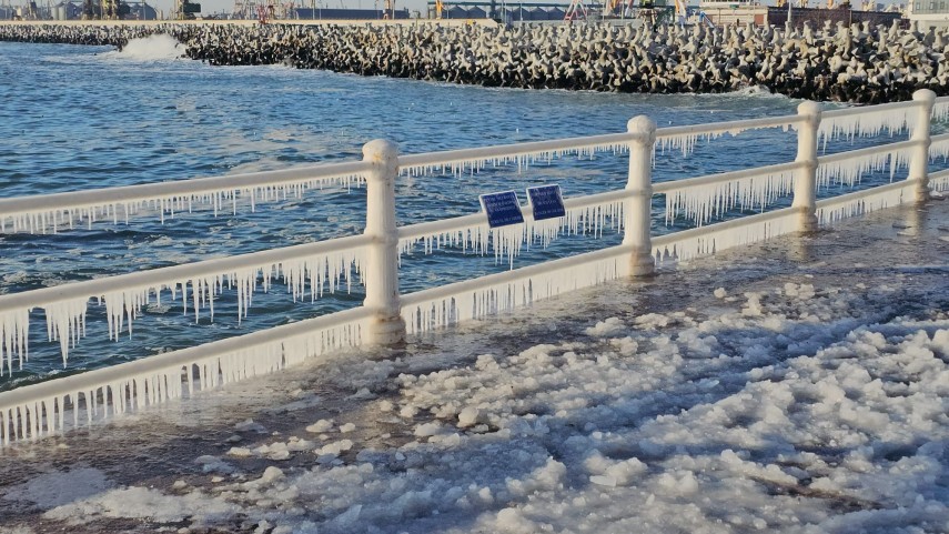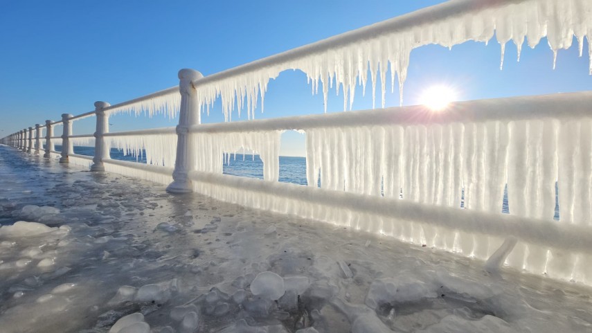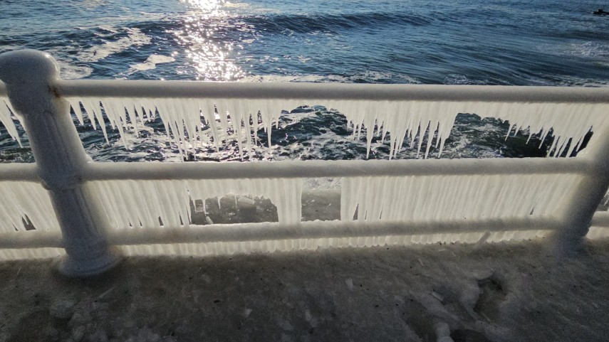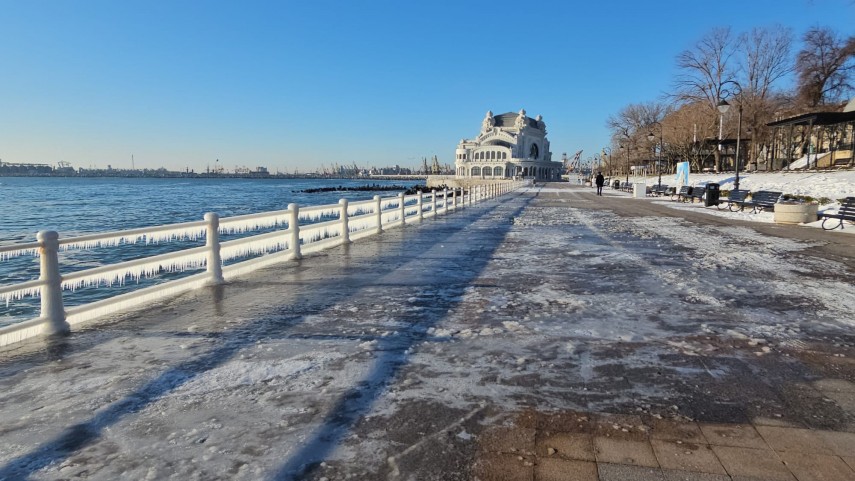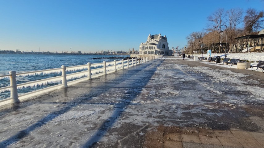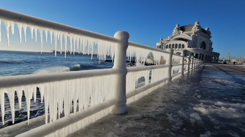 FOTO+VIDEO: Imagine spectaculoasă la malul mării! Faleza Cazinoului, acoperită de gheață și țurțuri