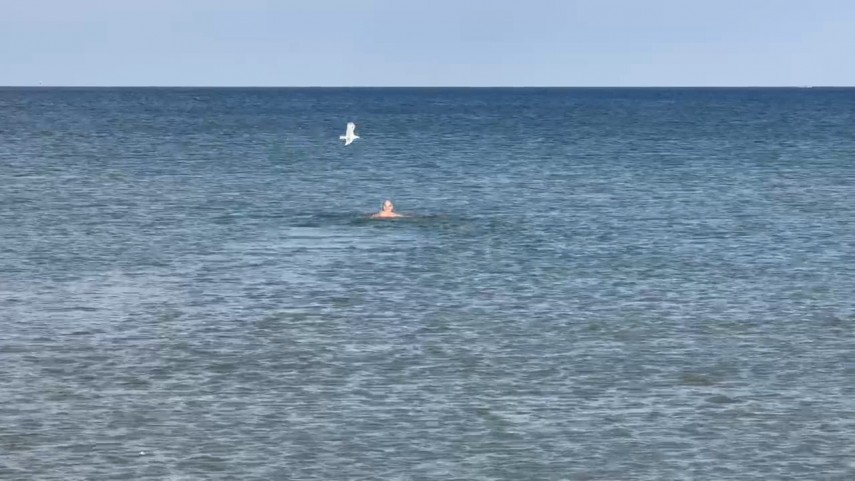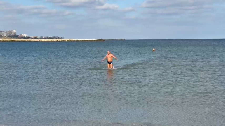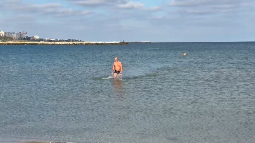 FOTO+VIDEO: Mijloc de noiembrie cu baie în mare, la Constanța. Un curajos s-a aventurat în apa mării