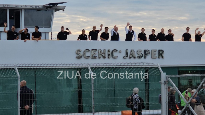 FOTO+VIDEO: Moment emoționant în Portul Constanța. Echipajul Scenic Jasper își ia rămas bun de la turiști