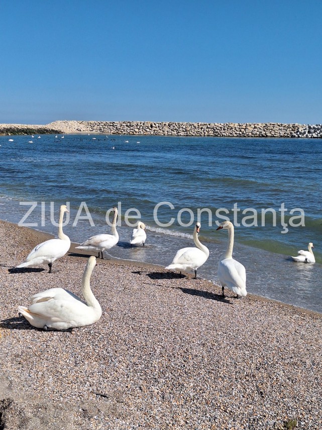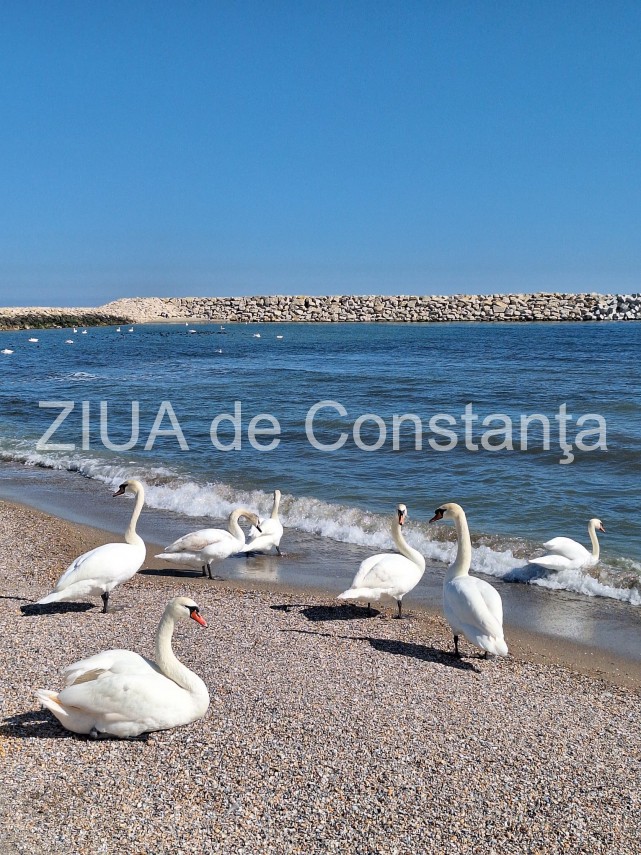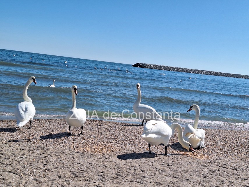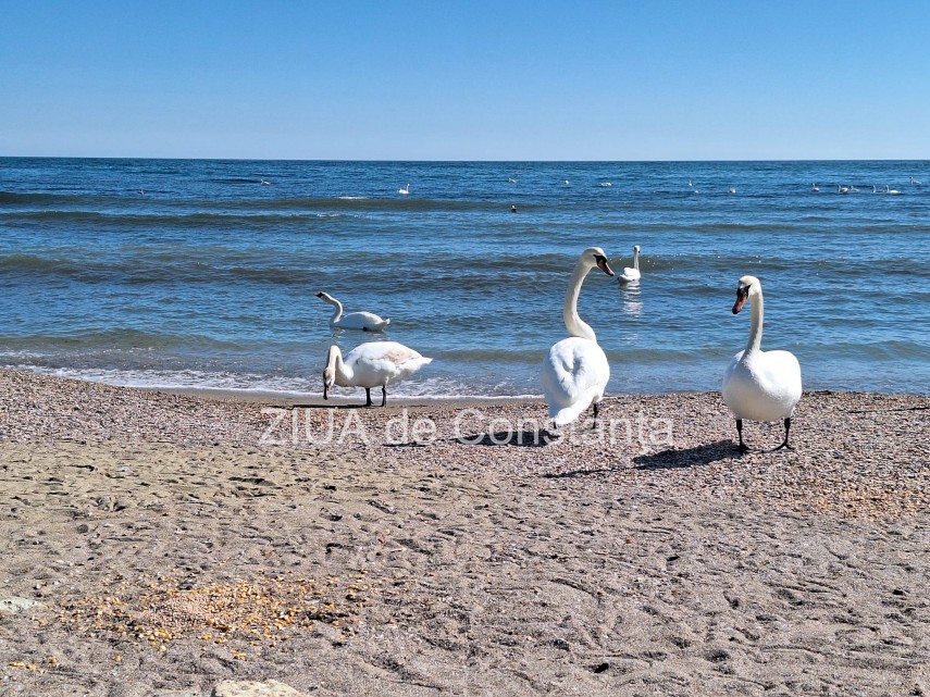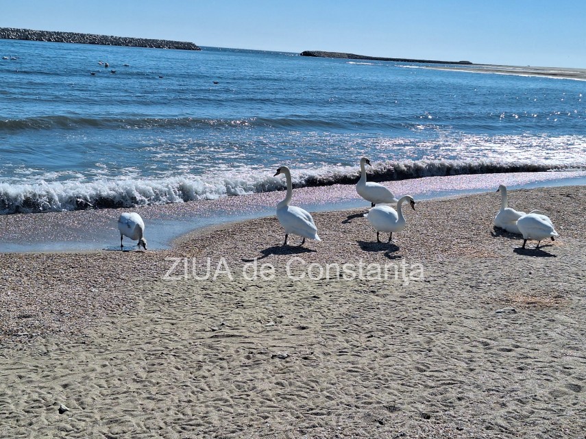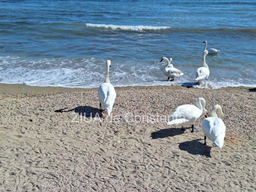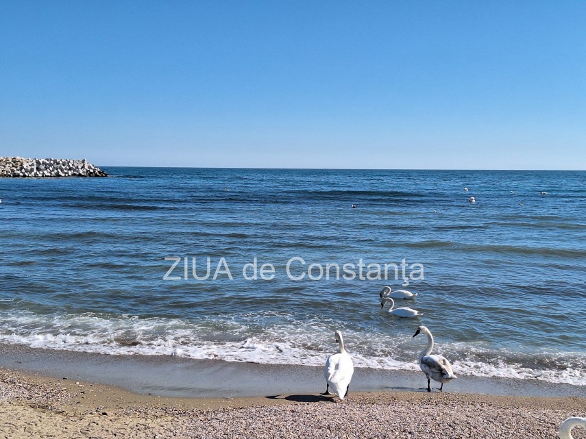FOTO+VIDEO. Soare de martie și lebede pe plaja din Eforie Sud, județul Constanța