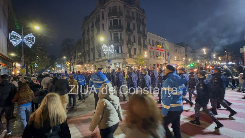 Astfel, am asistat la retragerea cu torțe a militarilor constănțeni – moment ce marchează încheierea festivităților de Ziua Națională - desfășurată în aplauzele sutelor de privitori. Militarii au pornit de la Sala Sporturilor, unde au fost întâmpinați în jurul orei cinci seara de locuitorii Constanței.