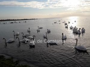 Cei care au ieșit la plimbare, astăzi, pe plaja de la Eforie Sud, profitând de vremea primăvăratică a începutului de an, au putut admira și lebedele sosite la mal, iar din peisaj nu au lipsit nici pescărușii.